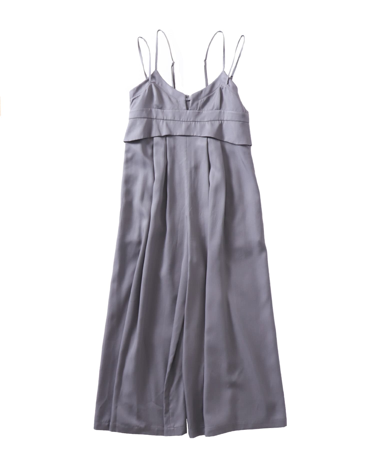胸元に曲線のカッティングがあり足長効果抜群のオールインワン。