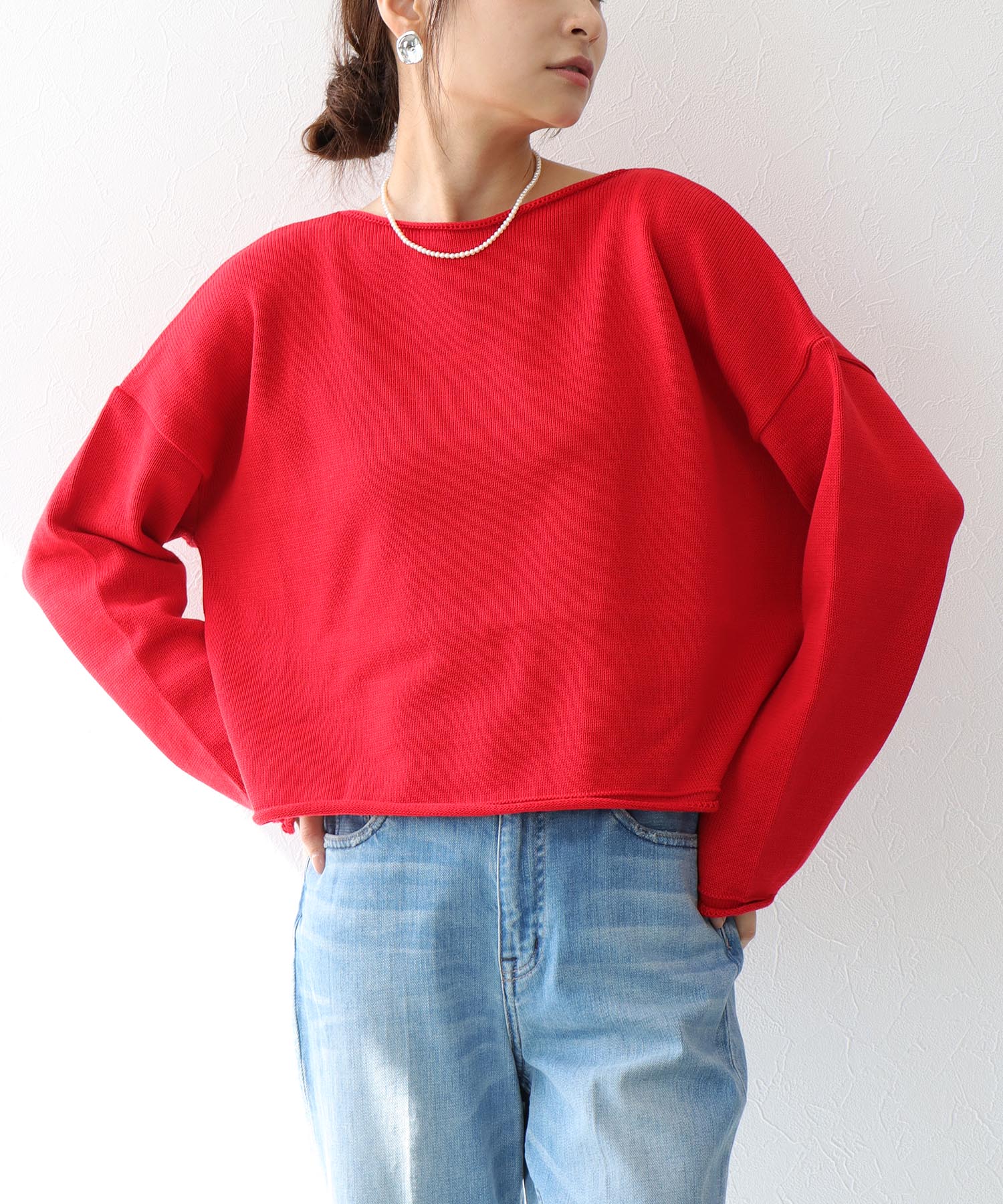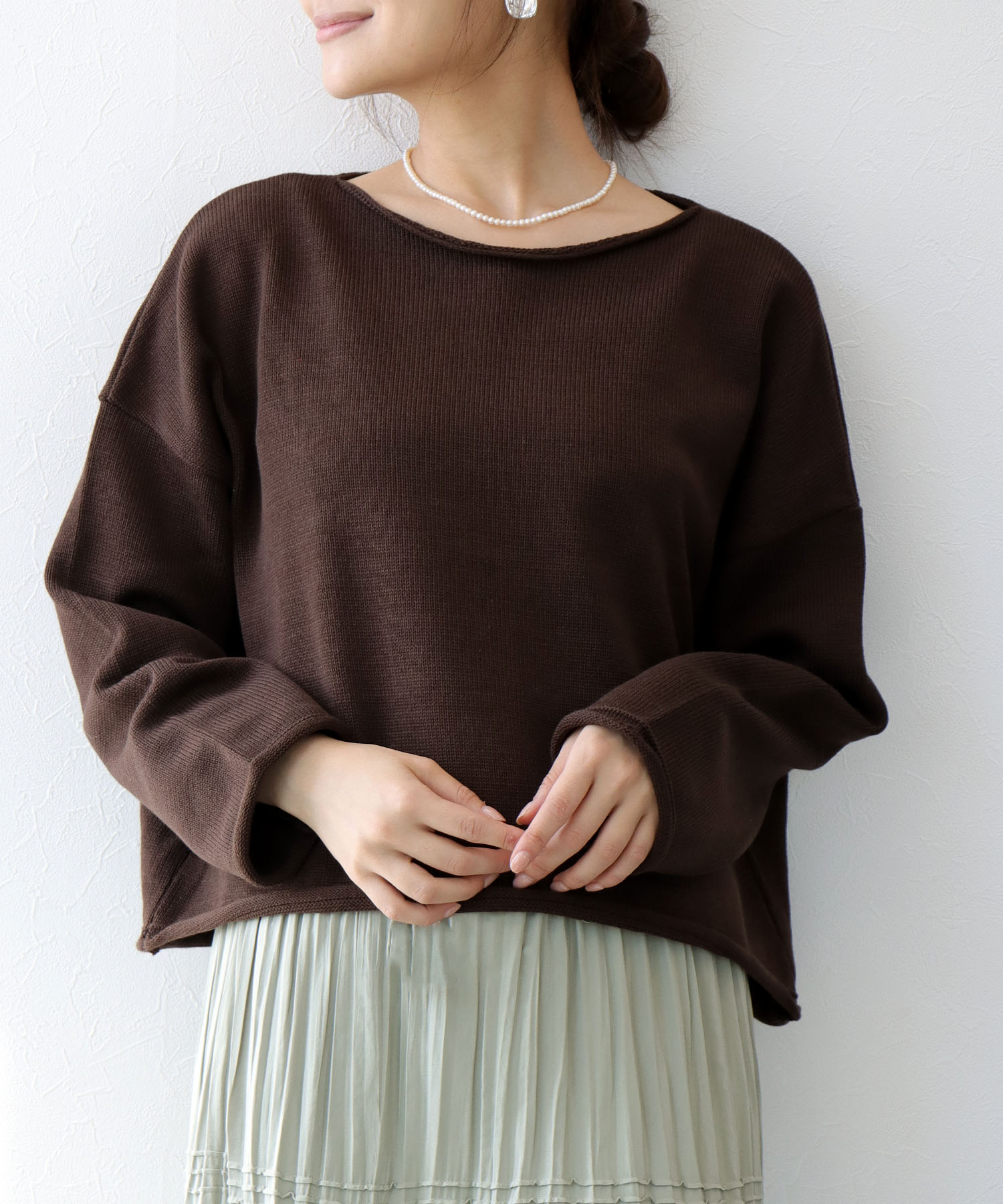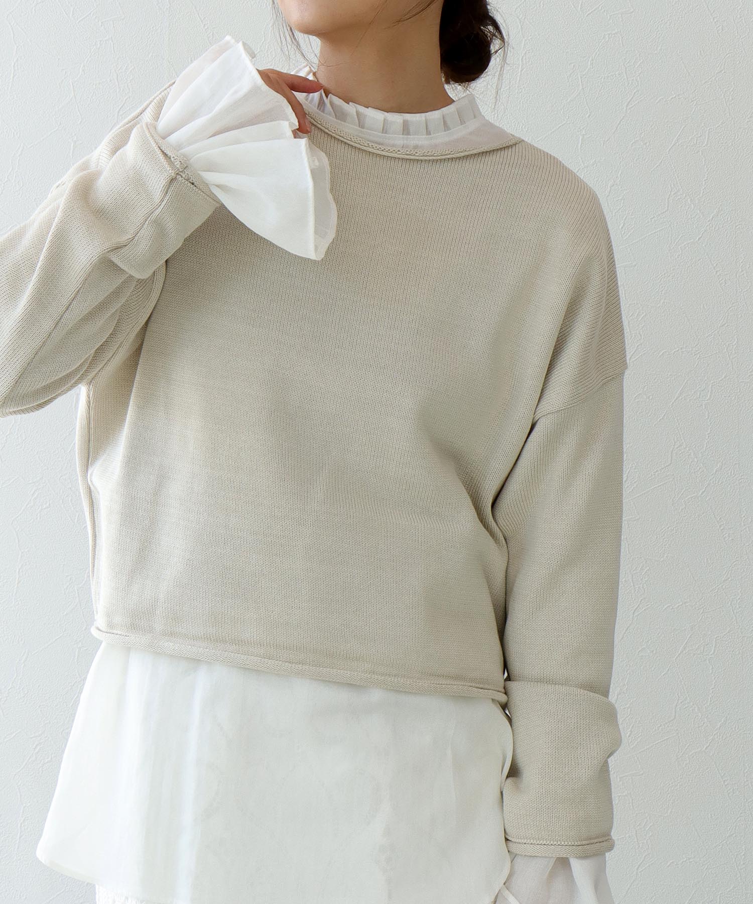 一見シンプルながらもフォルムや糸の厚みなどを考慮して丁寧に編み上げられた上質なニット。着心地は軽く、肌触り滑らかなので敏感肌の私もストレスフリーで着用できました。また、ショート丈なのでinせずともスッキリな印象に✨。首元も開きすぎないデザインで、年齢問わず着用できるおすすめの1枚です。