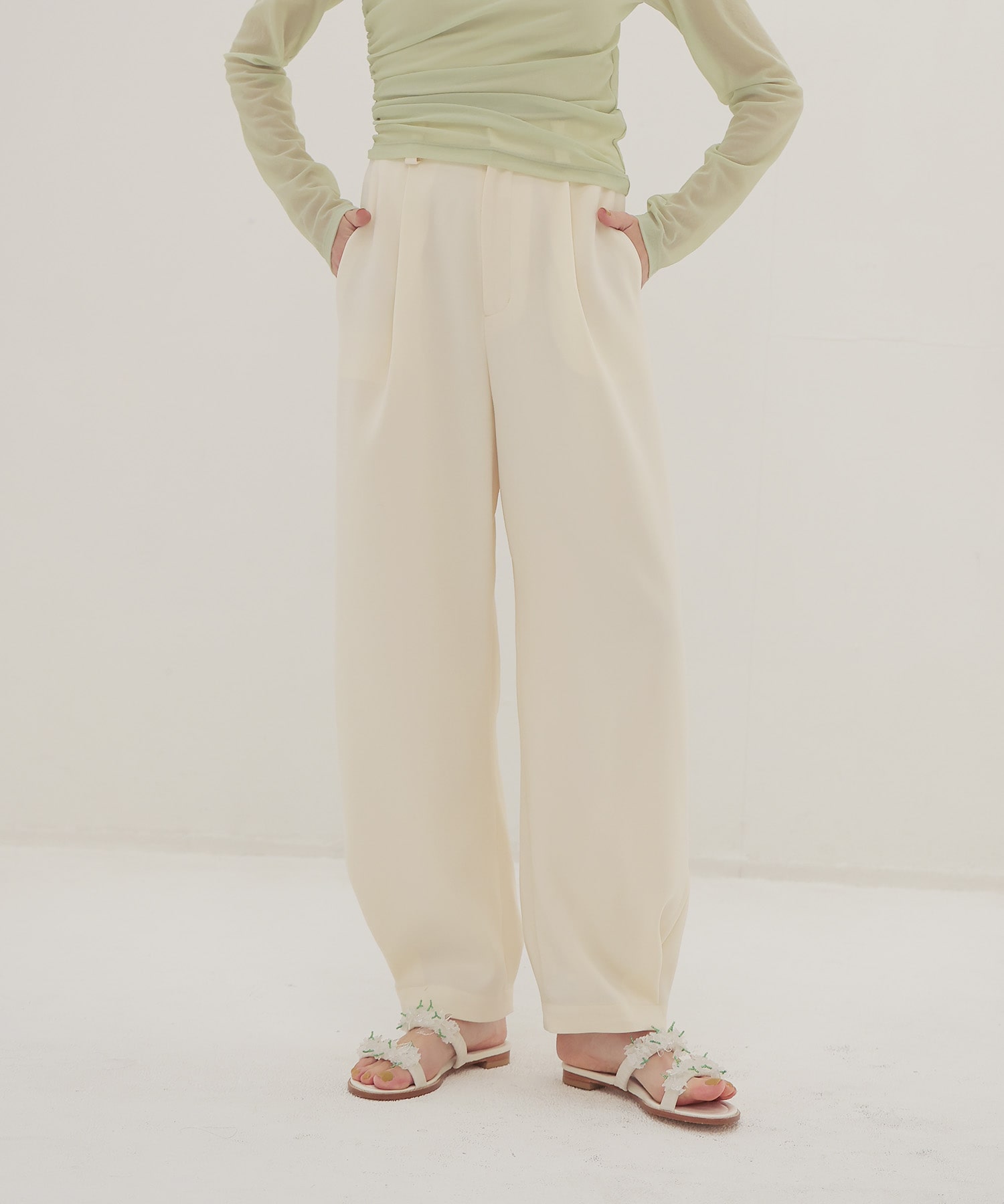 ●double satin hem tuck pants