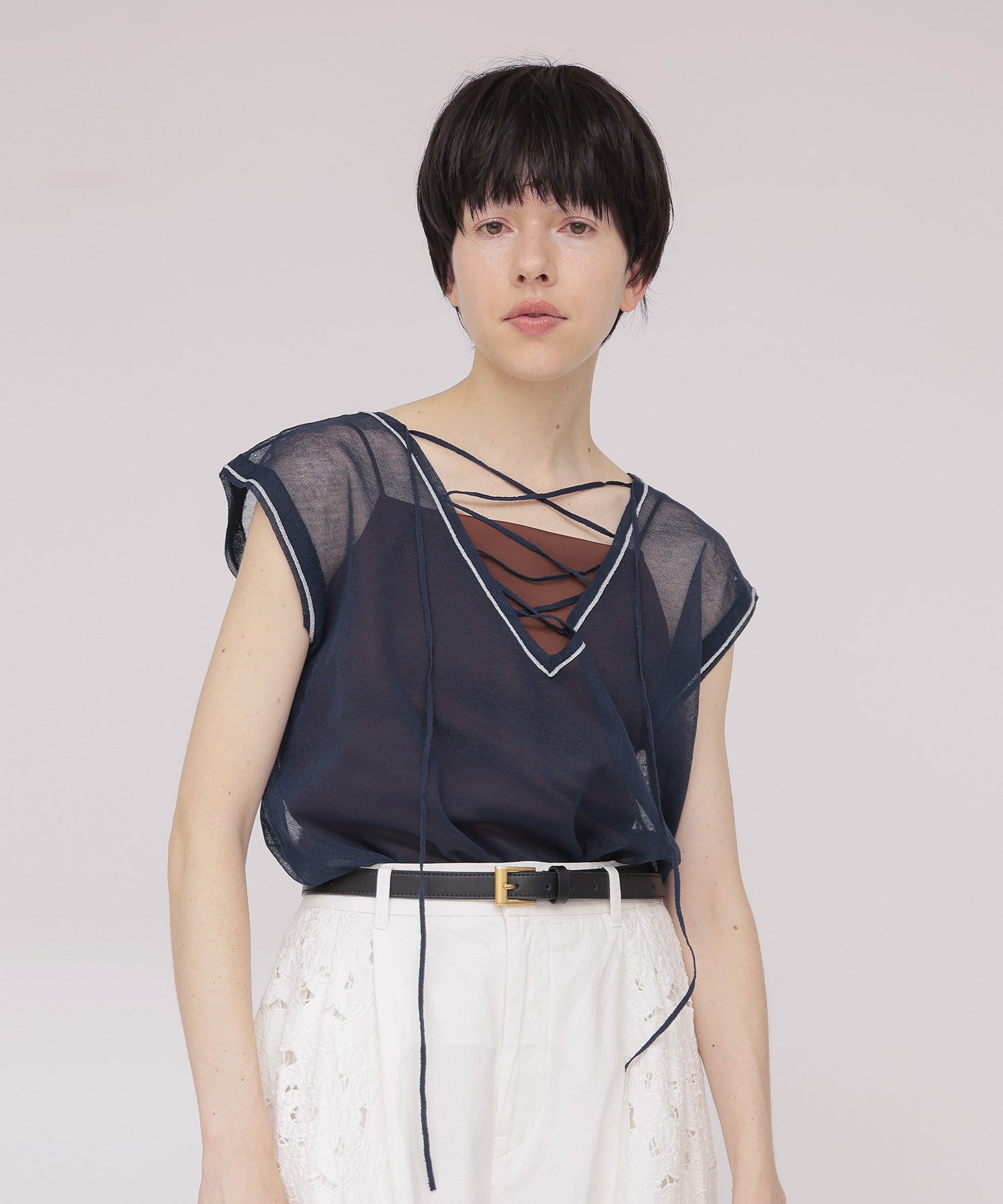前後2wayタイプでレースアップのアクセントが華やかなトップス。